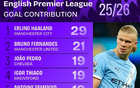 本赛季英超参与进球榜:哈兰德29球居首,B费21球次席